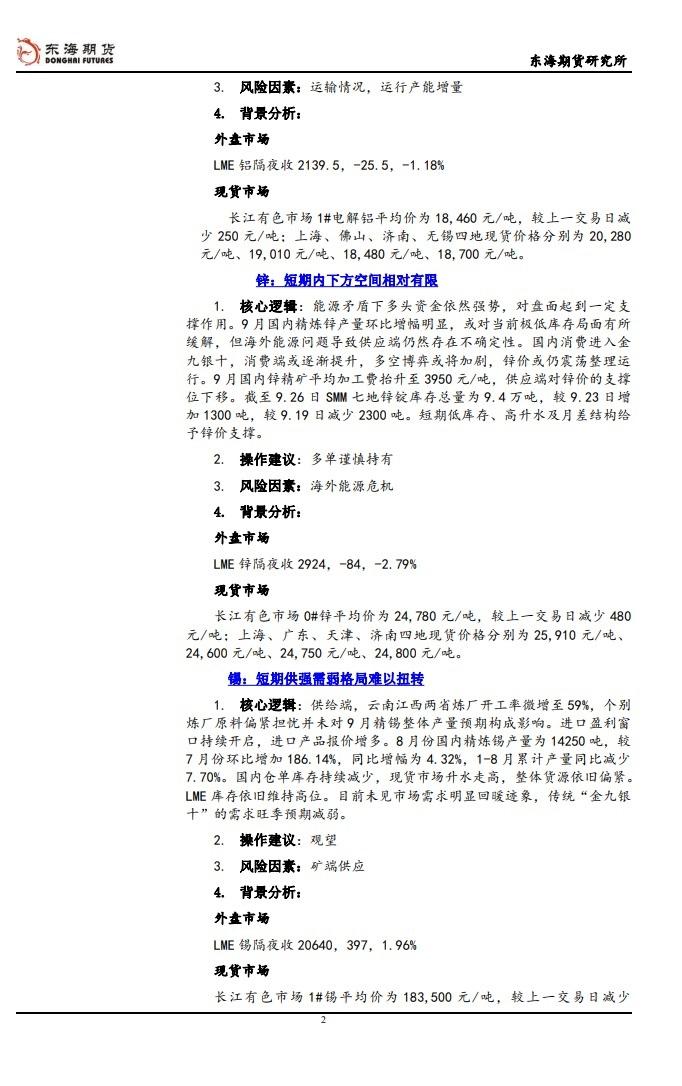 期货公司观点汇总一张图:9月27日有色系(铜、锌、铝、镍、锡等)