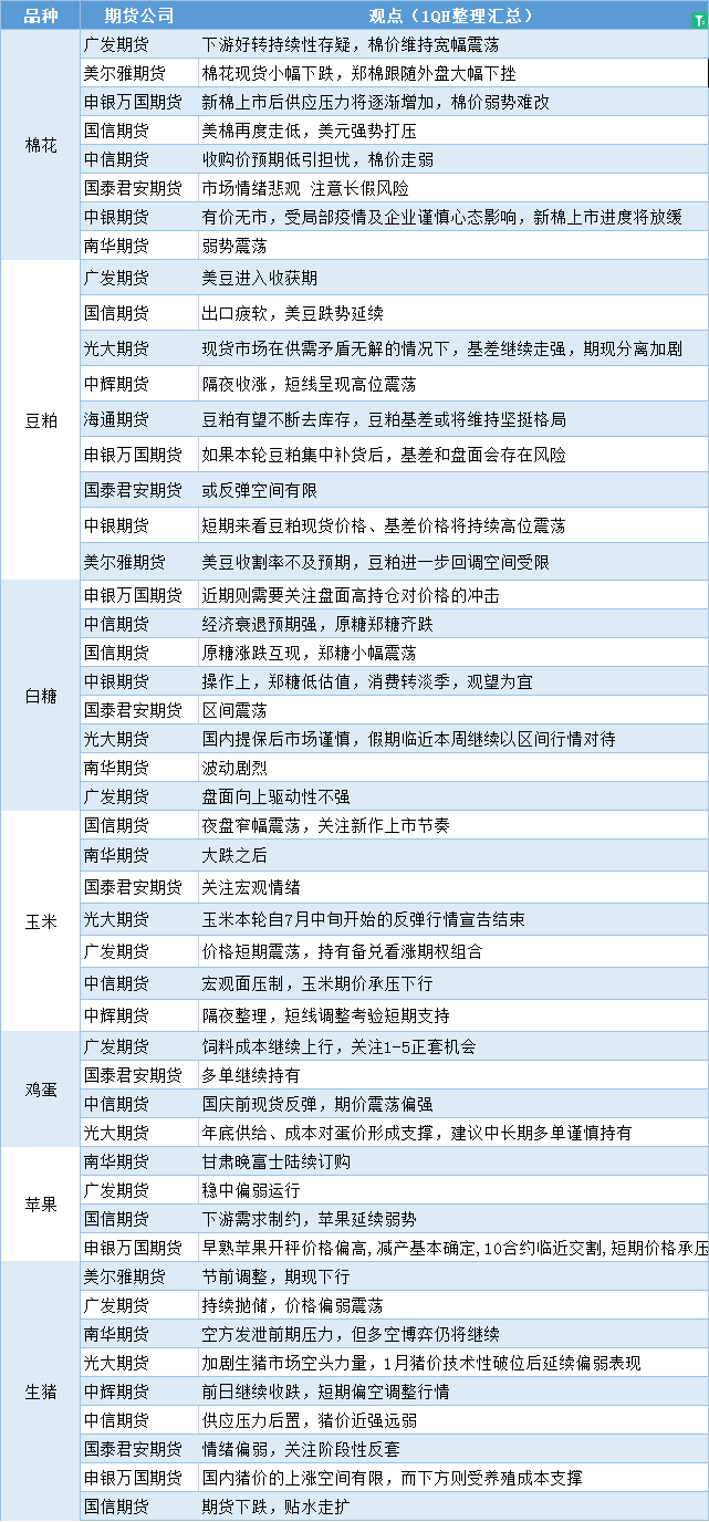 标题:期货公司观点汇总一张图:9月27日农产品(棉花、豆粕、白糖、玉米、鸡蛋、生猪等)