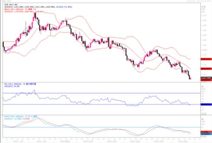 升至2002年以来的新高,日内最高触及114.65,资金对美元的趋之若鹜,也持续对黄金造成压力。今年3月,金价一度突破2000美元关键大关,但随着各大央行大幅加息以抑制不断飙升的通货膨胀,迄今已下跌逾400美元,跌幅超过20%。上周,美联储将利率上调75个基点,并暗示未来还将进一步加息。美国利率上升削弱了非孽息黄金的吸引力,同时提振了美元和债券收益率。10年期美国国债收益率攀升7.2个基点,至3.762%。指标美国国债收益率在2011年以来的最高水准附近企稳,增加了持有无息黄金的机会成本。上周各国央行的一系列升息举措令金价近期承受沉重压力,且在未来数月央行不会改变策略的情况下,黄金的中期前景看起来相当黯淡。本周末将有一系列通胀数据出炉,预计将显示消费者价格指数(CPI)仍在以越来越快的速度上涨。这将加强央行的鹰派策略,他们一直在利用加息来试图将通货膨胀率拉低到2%左右的目标数字。目前看来,这是一个比较遥远的希望。